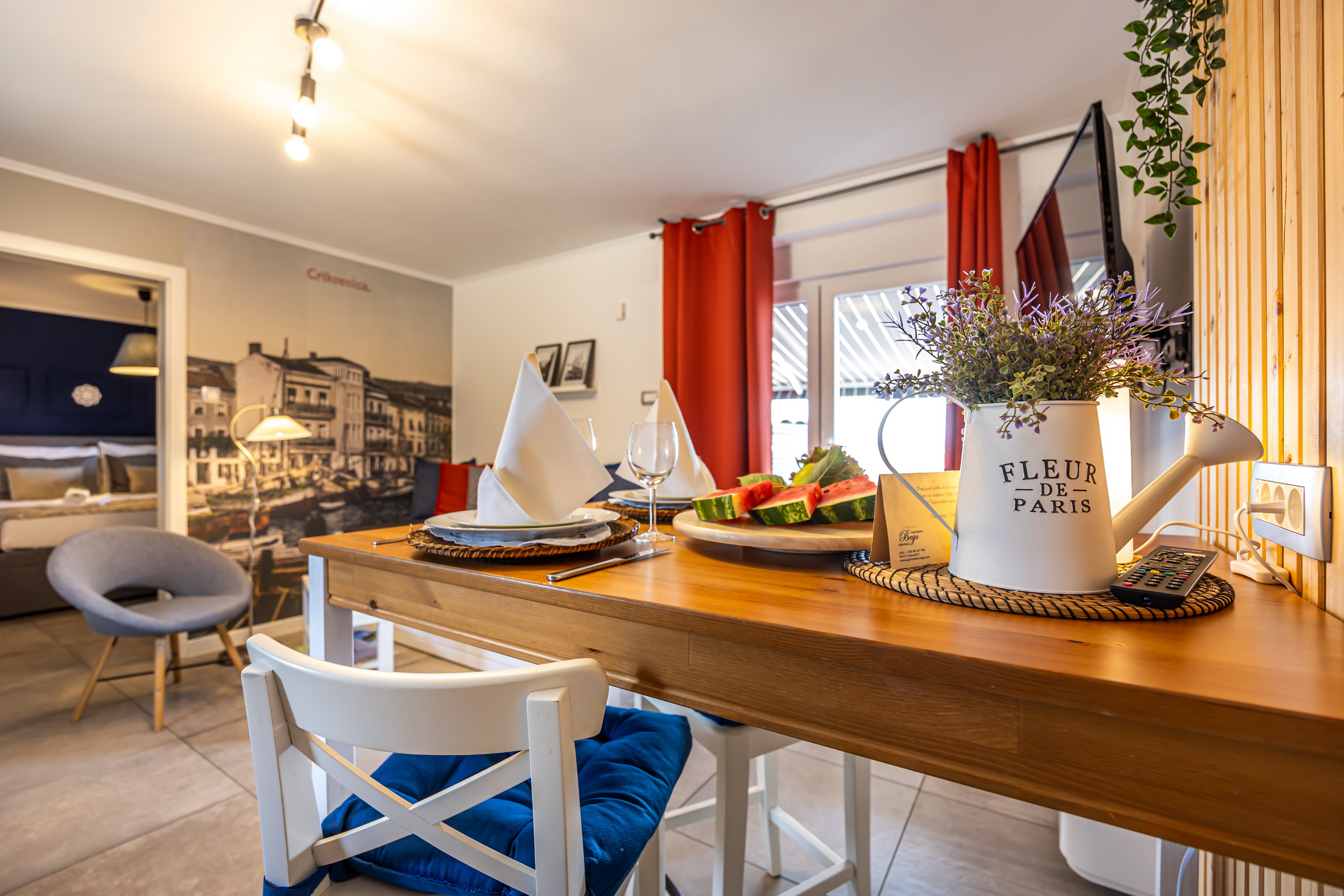 Our property features unique heated bio pool that will make you feel like you are swimming in a natural sea surrounded by azure water. The gym, wellness, jacuzzi, sauna, parking lots, laundy and much more is available for you to enjoy. We also offer a fresh healthy breakfast made with care and quality ingredients delivered straight to your apartment every morning.